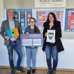 Spendenübergabe an Mercedes Reinert und Schulleiter Mathias Meier Gerwig. Stellvertretend für das Organisationsteam "Schule als Staat - Robertanien